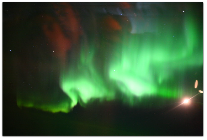An aurora I enjoyed on a flight between the US and Europe a few years ago.