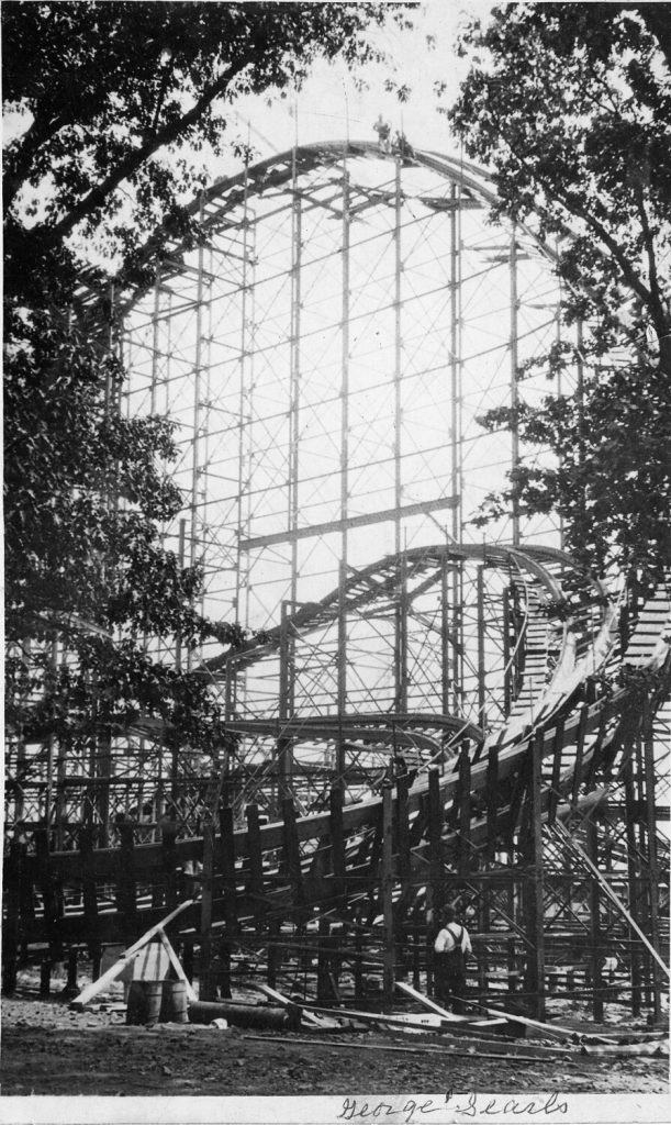 I’ve also read somewhere that, while the Terrifying Triplets had an identical design, the Palisades version had to fit the same height onto a smaller footprint, requiring steeper drops and more highly banked turns, making it the most terrifying of the three. It also had the shortest lifespan, and was demolished in 1934.
