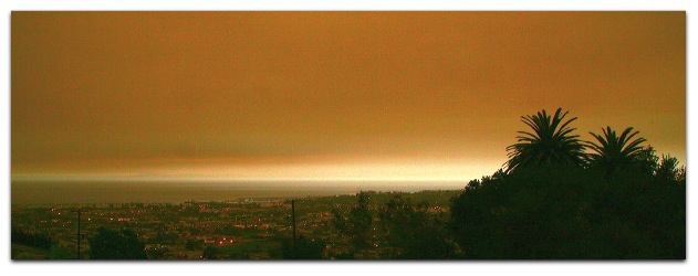 Yesterday, for example, was an orange day. All day long the sun was filtered though clouds of ash from the fire. I took a few pictures, naturally. The set is at the link here and behind the picture above.