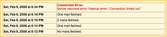 But lately I haven’t been getting mail to Searls.com. Didn’t know what it was, but my wife just figured it out and provided helpful tech support. I needed to go into Settings in my Gmail account, then to Accounts, then down to Get mail from other accounts, and see when my mail was last picked up. Turns out it was 9 February. Here’s what the Fetch History said…