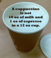 To me Starbucks has three problems, at least two of which Schultz has addressed already and needs to address again. One is the continued belief by its employees that a cappuccino is one ounce of espresso and ten ounces of milk in a twelve ounce cup. Another is selling too much stuff that’s not coffee. The third is music that’s too loud.