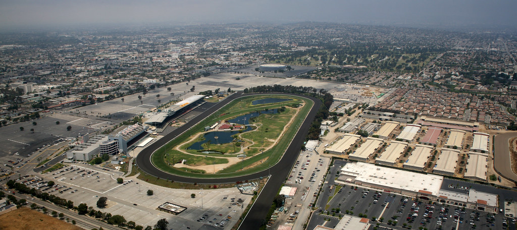 (Studying this a bit, I’ve learned that good horse race tracks are very deep flat-topped trenches filled with layers of special dirt that require constant grooming, much of which is devoted to making sure the surface is to some degree wet. In arid Los Angeles, this is a steep requirement. For more on how this works, this Wired story will help.)