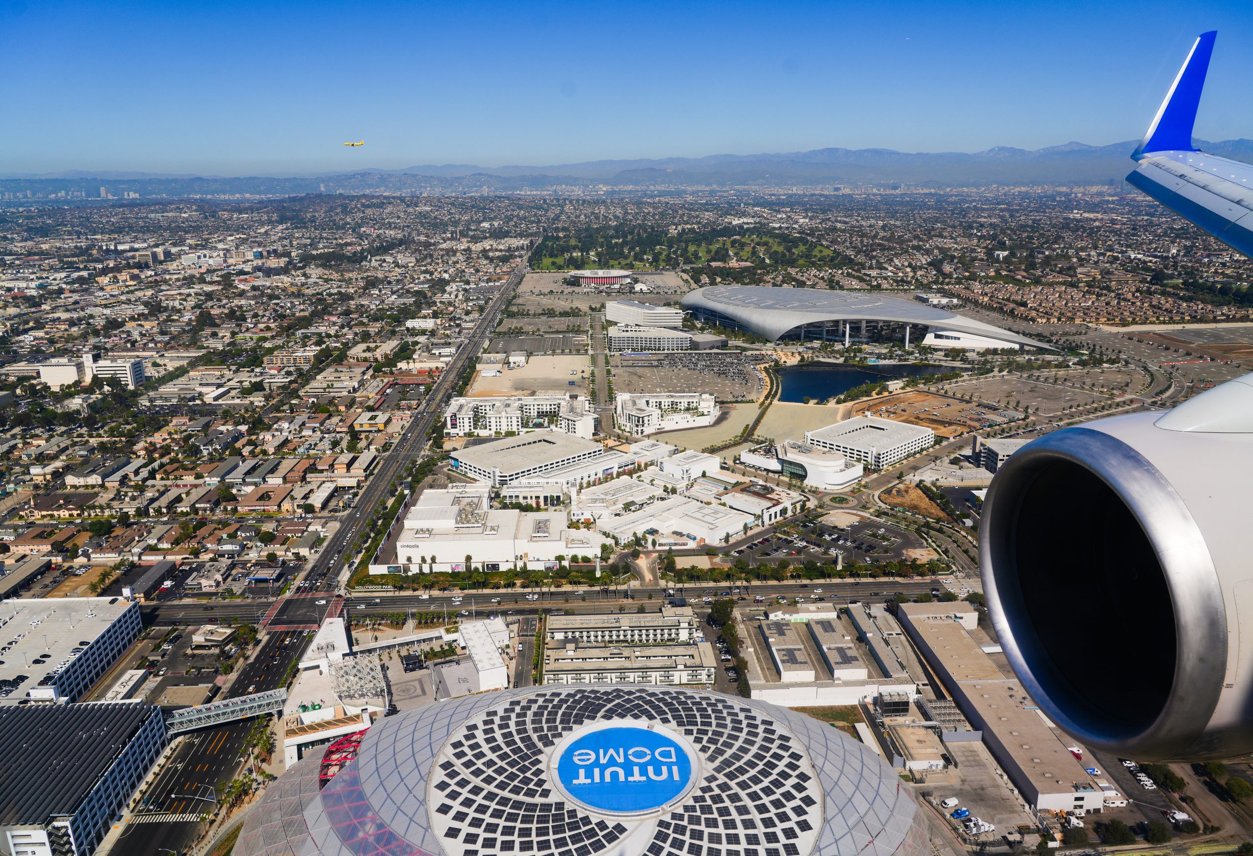 After this the Covid pandemic hit. I didn’t travel by air (or much at all) for almost two years, and most sporting events were canceled or delayed. So the next time I passed over the site in a position to shoot it was April 2022, when SoFi Stadium was fully operational, and the area around it mostly complete: