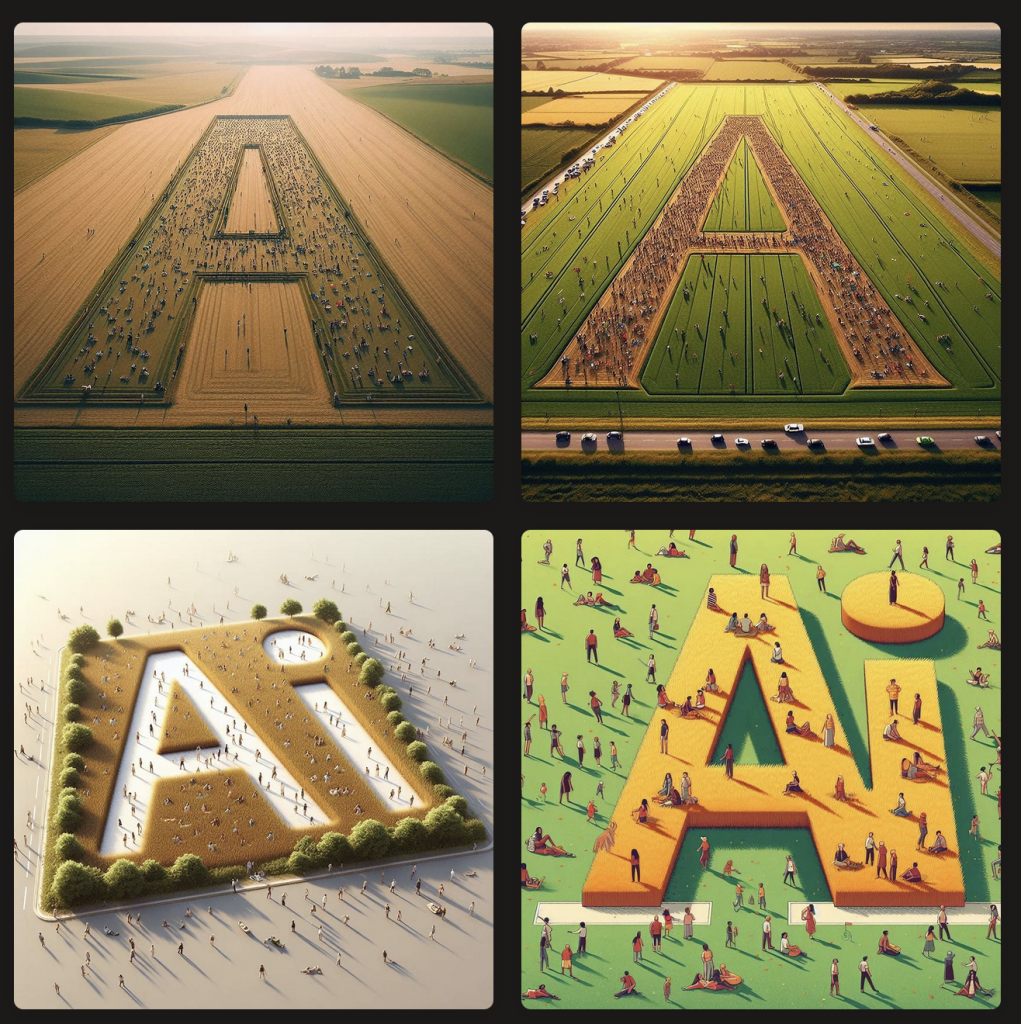 Me: A vast field on which the ground spells the letters A and I, with people on it, having a good time.
