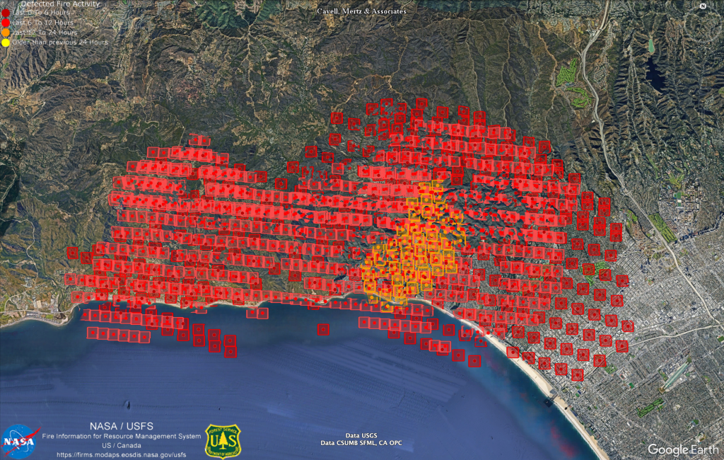 Here is the FIRMS map of the Los Angeles fires, as of 7:50am Pacific time: