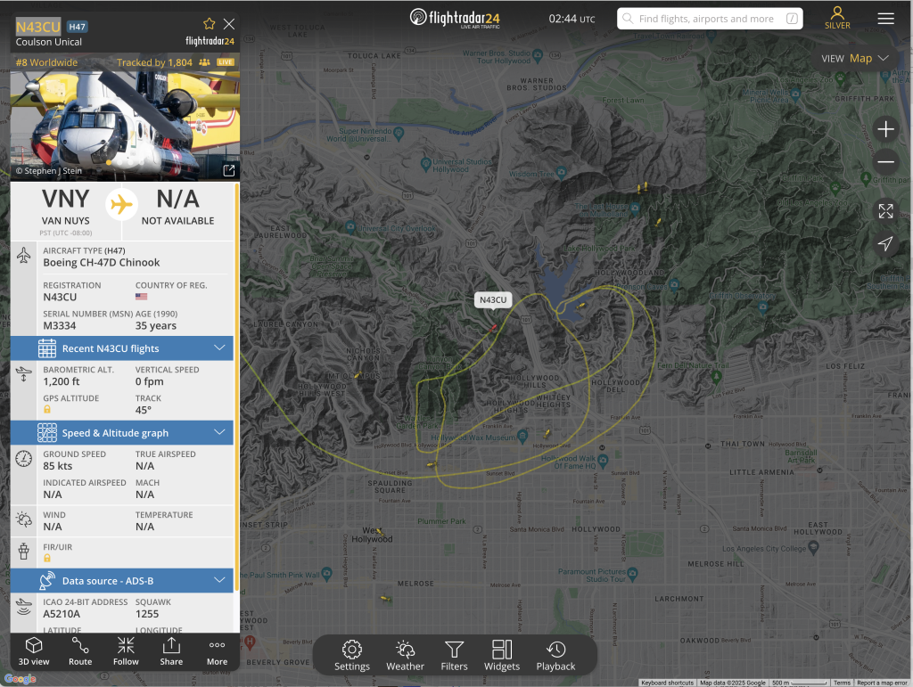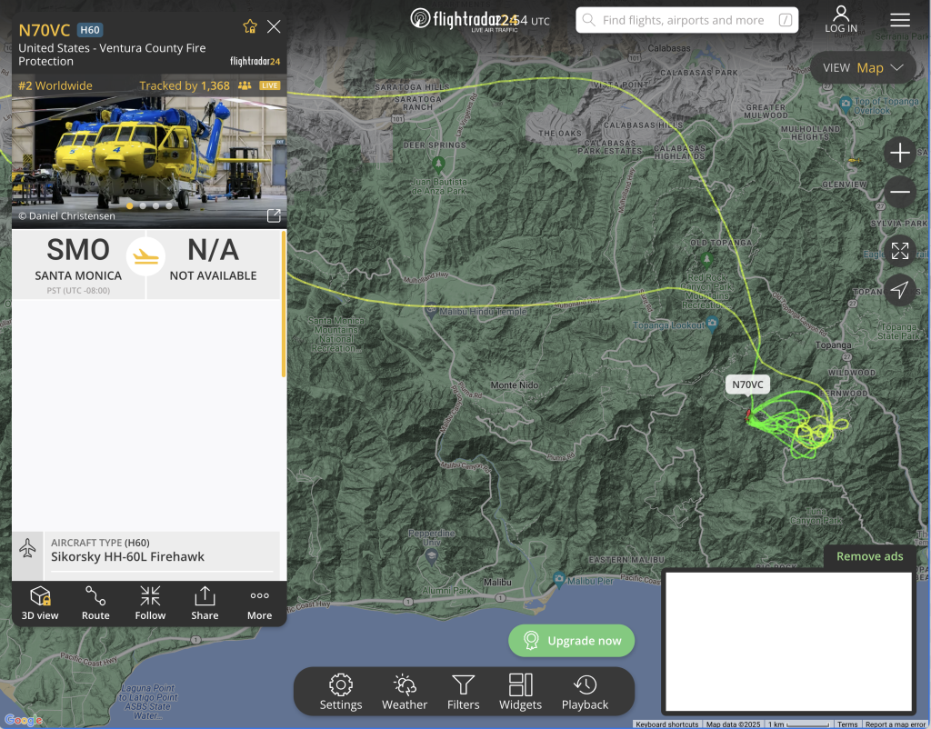 6:41pm Via FlightRadar24, here is the flight path of Fire 1, of the Los Angeles Fire Department:
