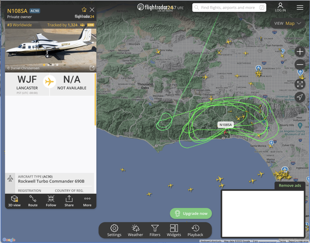 2:56pm Here is the flight path of a private aircraft out of Lancaster, CA: