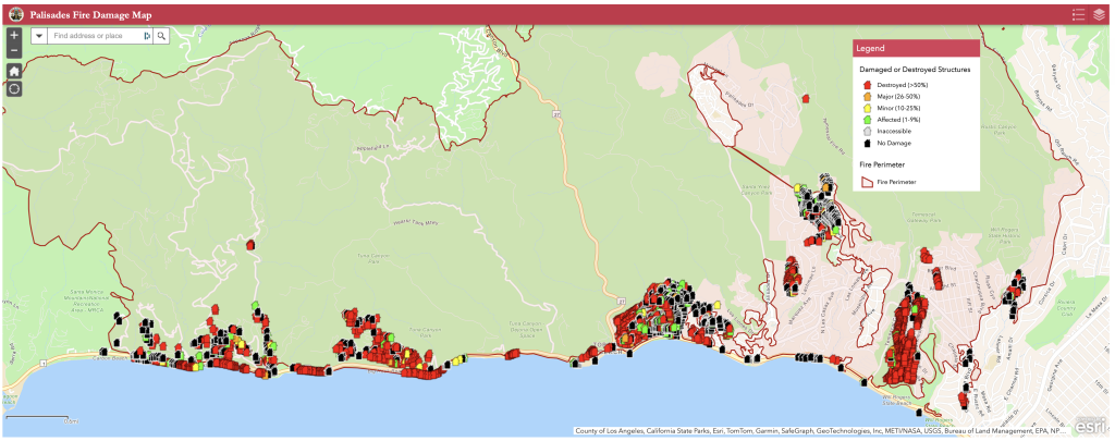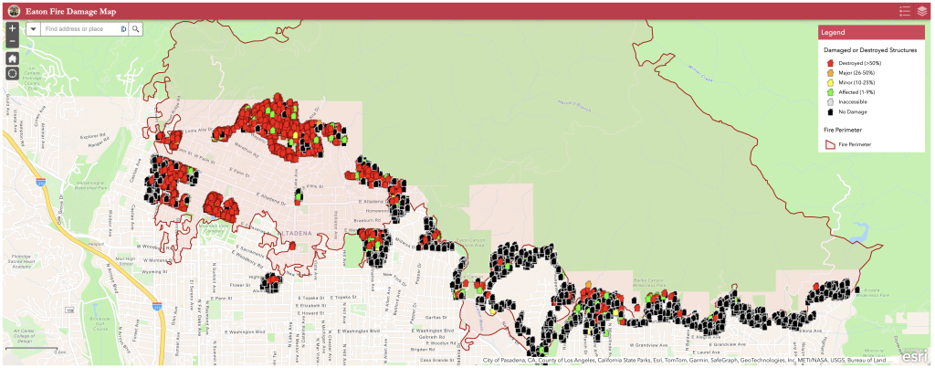 Here is a close-up of one section of the Eaton Fire map, with one moused-over pop-out: