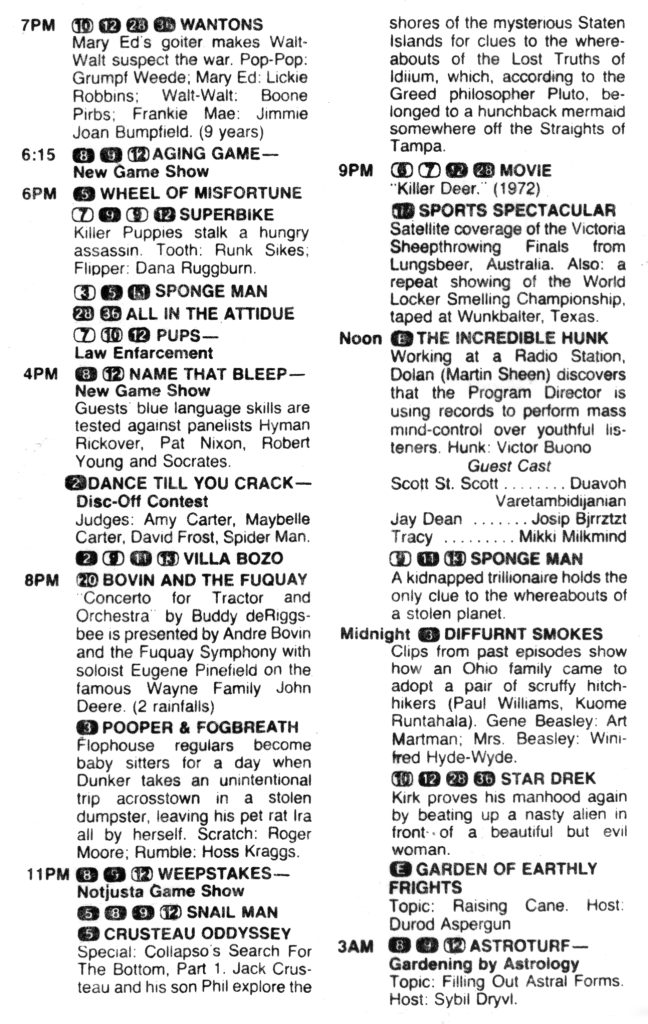 Guidance toward answers were provided on newspaper pages covering entertainment, and in weekly magazines. The biggest of those was TV Giude, at its peak the most popular magazine in the U.S.*, with 20 million customers, plus some multiple of that in pass-along readers.